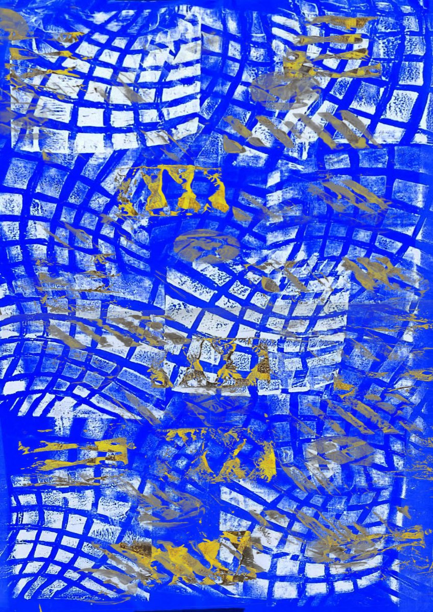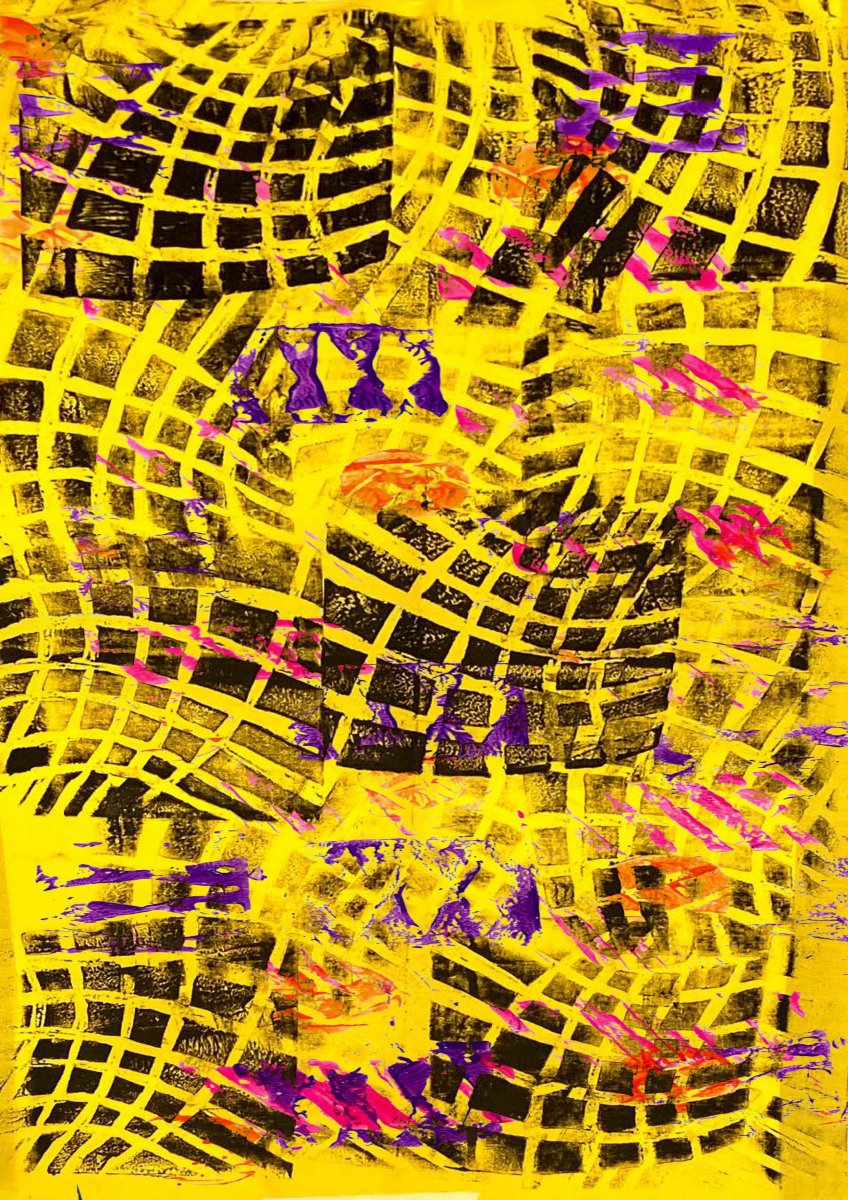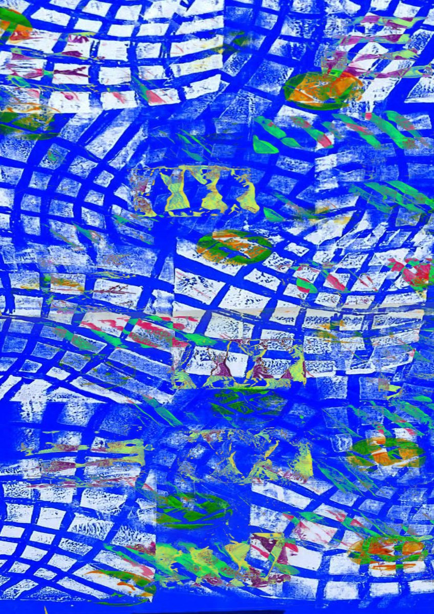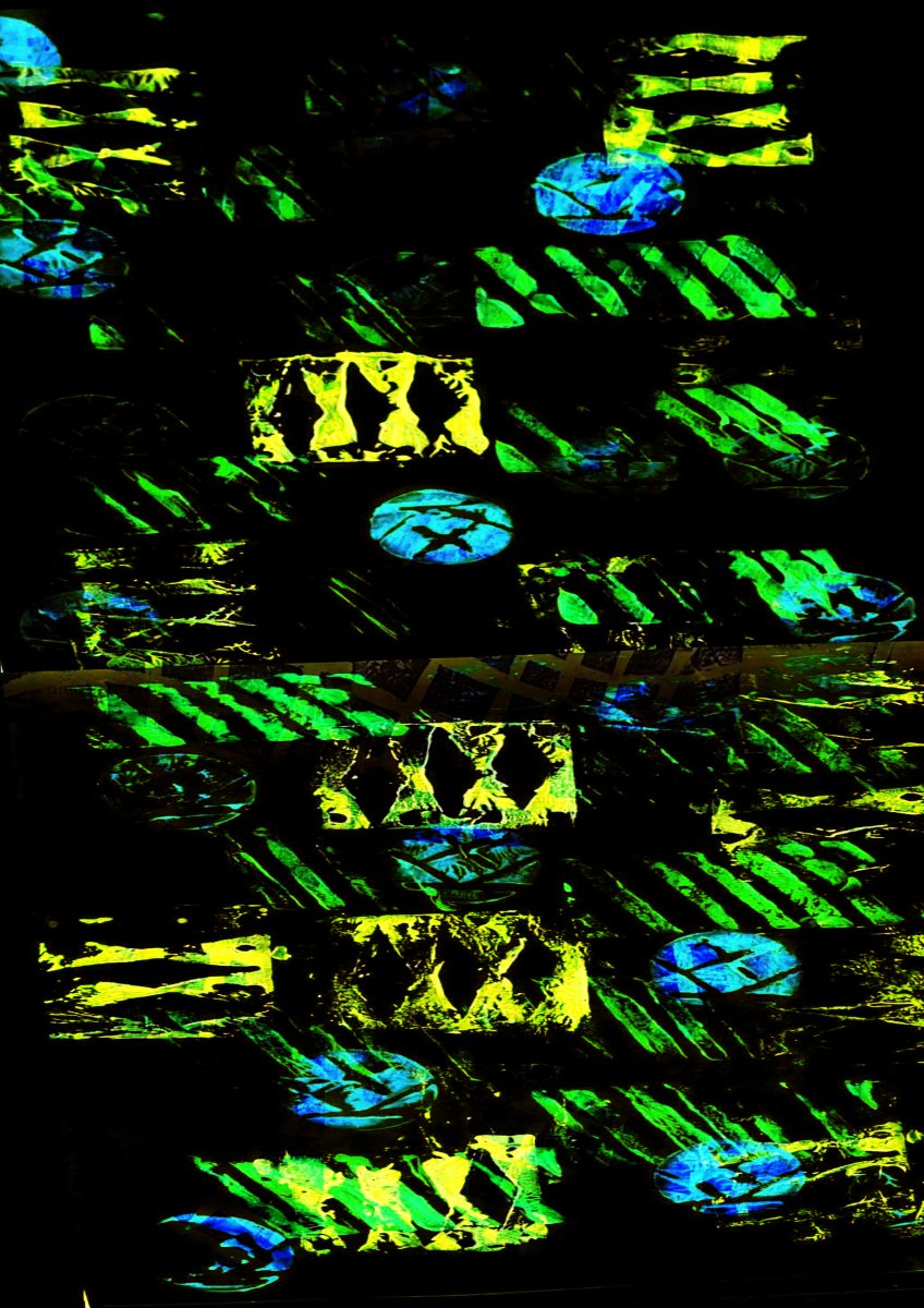 I merge a lino print above together. Change a transition, adjust the colour and stuff. I wanted to carry on with the garment. I sent the design to Contrado to print out for me. so I could carry on with the work by developing into the body.